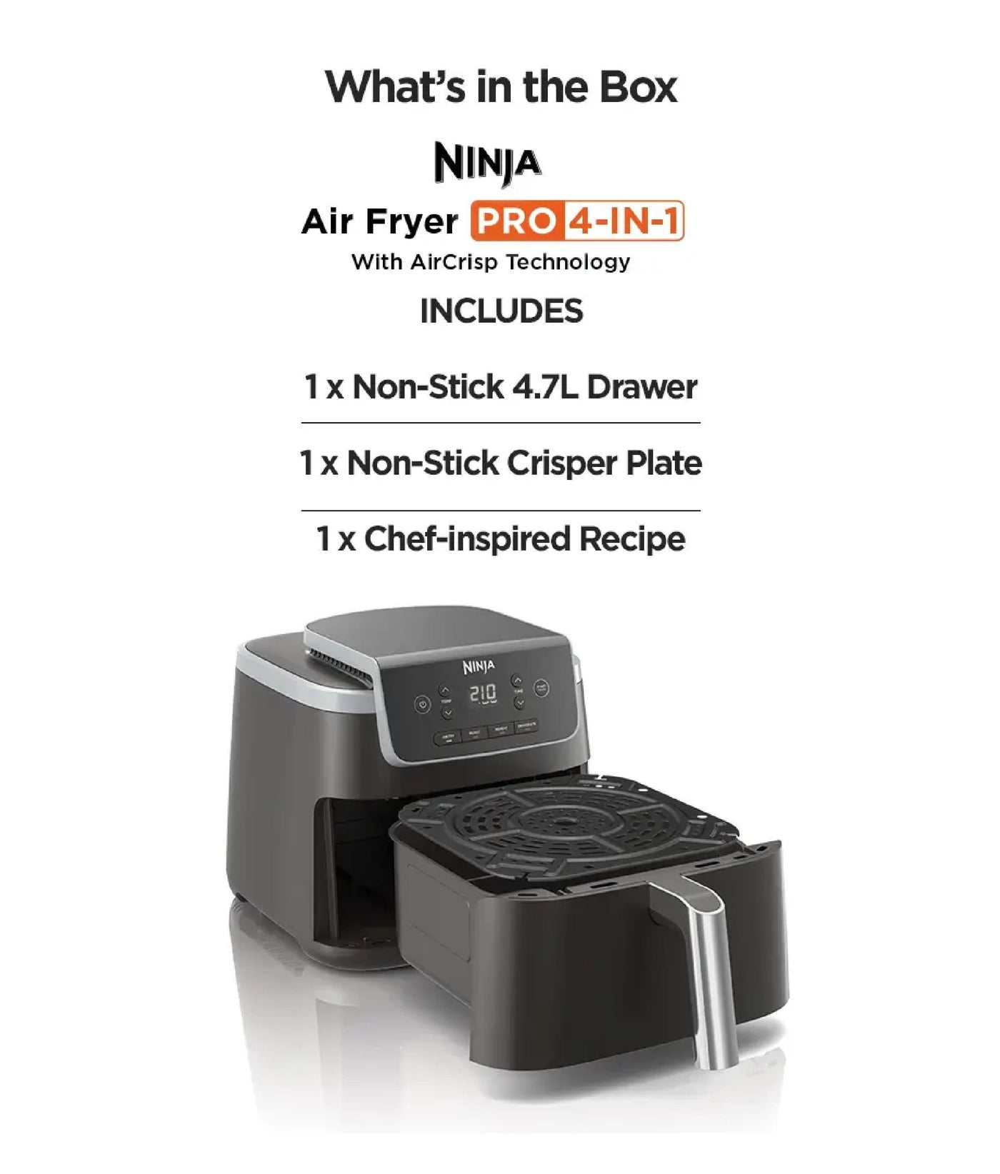 - Ninja AF141 Air Fryer Pro 4.7L AirCrisp Technology with 4 Programmable Settings