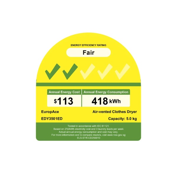 EuropAce EDY5801B 8kg Vented Dryer EDY 5801B