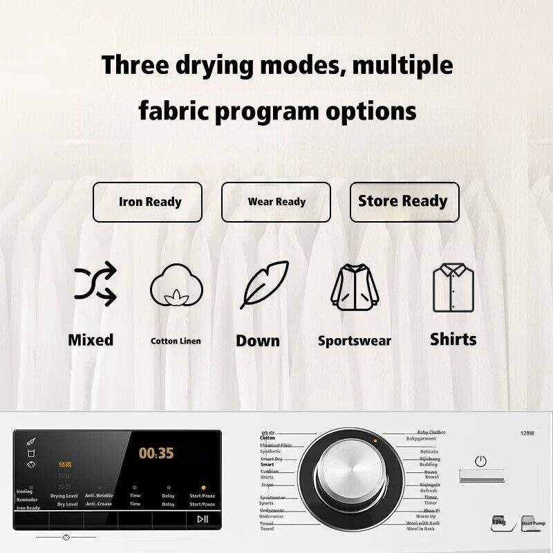 - Haier EHG100129W 10kg Heat Pump Dryer, Sterilisation & Mite Removal