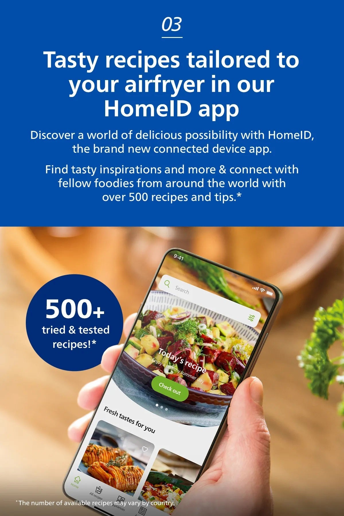 {"id":9155681714434,"title":"Philips NA120\/09 12-in-1 Airfryer 4.2L RapidAir Energy-Efficient SmartApp","handle":"philips-na120-09-12-in-1-airfryer-4-2l-rapidair-energy-efficient-smartapp","description":"The Philips NA120\/09 Airfryer utilizes RapidAir technology to circulate hot air at high speed, producing evenly cooked food with a crisp exterior. The appliance operates at a power rating of 1500 watts, delivering consistent heating performance. Its 4.2 litre capacity accommodates side dishes, snacks, and full meals in a single batch. The unit reduces fat content by up to 90 percent compared with traditional deep frying methods. The device features twelve distinct cooking modes, including fry, bake, grill, roast, and dehydrate. Each mode is preset for optimal temperature and time settings, eliminating guesswork. The built‑in digital display provides clear feedback on temperature, timer, and cooking mode. The touchscreen interface is intuitive, allowing users to adjust settings with a single swipe. The Airfryer includes a detachable, dishwasher‑safe basket for easy cleaning. The basket’s non‑stick coating prevents food from sticking and reduces the need for added oil. The appliance is equipped with an automatic shut‑off safety mechanism to prevent overheating. The product complies with safety mark 240147-11, confirming adherence to regional standards. The unit’s interior is constructed from BPA‑free, heat‑resistant plastic for durability. The external housing is coated with a scratch‑resistant finish. The device’s compact footprint measures approximately 30 cm length, 30 cm width, and 35 cm height, fitting comfortably on most kitchen countertops. The weight of the unit is 5 kilograms, facilitating stable placement during operation. The Airfryer’s rapid heating element reaches target temperature within seconds, reducing overall cooking time. Energy consumption is optimised through efficient power management, lowering electricity bills. The appliance integrates with the Philips HomeID app, providing access to curated recipes and cooking tips. Users can synchronise the Airfryer with the app via Bluetooth for remote monitoring. The app offers step‑by‑step guidance for each cooking mode. The Airfryer’s timer can be set up to 60 minutes, with audible alerts upon completion. The device includes a 2‑year manufacturer warranty covering parts and labour. The product is manufactured in China under Philips quality control standards. The air circulation system ensures minimal oil usage while maintaining texture. The appliance’s temperature range spans from 80°C to 200°C, covering a broad spectrum of cooking requirements. The unit’s interior is designed for easy food removal, with a pull‑out drawer. The Airfryer’s construction minimises heat loss, improving cooking efficiency. The device supports batch cooking, allowing multiple food items to be prepared simultaneously. The air flow design reduces moisture loss, preserving food juiciness. The appliance’s silent operation ensures a low noise environment. The unit’s power cord length complies with safety regulations for kitchen appliances. The Airfryer’s electronic control board provides reliable performance over extended use. The product’s packaging includes a user manual, warranty card, and recipe booklet. The device’s quick‑release mechanism simplifies basket removal for cleaning. The Airfryer’s temperature sensor provides accurate readings for consistent results. The unit’s design incorporates a drip tray to collect excess oil and moisture. The appliance’s exterior remains cool to the touch during operation, enhancing user safety. The Airfryer’s cooking algorithms are calibrated for optimal crispness. The device’s firmware can be updated via the HomeID app for improved functionality. The product’s price point offers competitive value in the Singapore market. The Airfryer’s performance has been validated through independent testing. The appliance’s construction meets ISO 9001 quality standards. The unit’s warranty service is supported by Philips Singapore service centers. The Airfryer’s design incorporates ergonomic handles for easy transport. The product’s dimensions allow storage in standard kitchen cabinets. The device’s power switch includes a lock‑out feature to prevent accidental activation. The Airfryer’s cooking basket is perforated to promote airflow. The unit’s internal lighting enables visual monitoring of cooking progress. The appliance’s timer can be paused and resumed without resetting settings. The Airfryer’s rapid air circulation reduces cooking oil usage by up to 90 percent. The device’s digital interface provides real‑time temperature display. The Airfryer’s cooking modes are labelled clearly on the control panel. The unit’s construction uses recyclable materials where possible. The product’s energy efficiency rating exceeds local standards. The Airfryer’s quick pre‑heat function shortens preparation time. The device’s safety features include over‑temperature protection. The appliance’s non‑stick basket is compatible with metal utensils. The Airfryer’s cooking results are consistent across repeated cycles. The unit’s design minimises oil splatter, keeping the kitchen clean. The product’s warranty covers manufacturing defects. The Airfryer’s user interface is multilingual, supporting English and local languages. The device’s firmware includes self‑diagnostic capabilities. The Airfryer’s cooking performance is comparable to professional kitchen equipment. The unit’s power consumption is measured at 1500 watts during peak operation. The appliance’s compact size frees up countertop space. The Airfryer’s digital timer ensures precise cooking durations. The device’s construction includes reinforced hinges for durability. The Airfryer’s rapid air technology reduces cooking time by up to 30 percent. The unit
