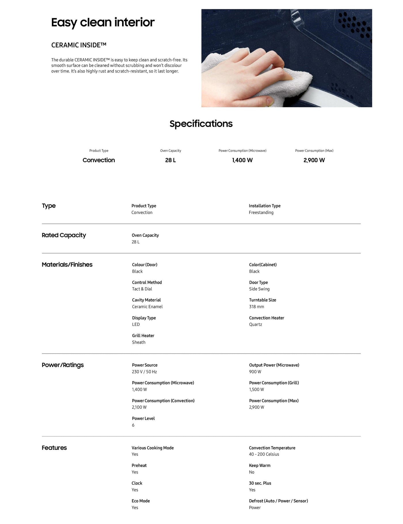 - Samsung 28L Convection Microwave Oven with HOTBLAST Technology
