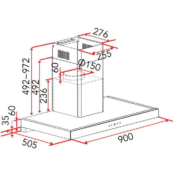 1. Mayer MMSI900HS-BK/SL 90cm Semi-integrated Hood Specifications 90cm Semi-Integrated Hood Air Flow up to 700m/hr Noice level <59db 3 Speed Mechanical Control 3 x 85w Motor 3 x Aluminium Grease Filter Wider Suction Coverage Stainless steel model LED Lamp (2x1w) Voltage: 230V/50Hz Charcoal Filter Included Dimensions Height: 120mm Width...