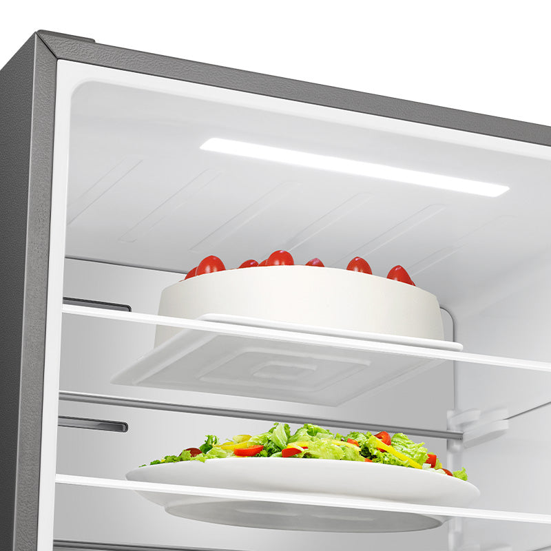 A 415‑litre refrigerator‑freezer combining a 321 L fridge compartment and a 94 L freezer. Dual‑Tech inverter compressor provides efficient cooling and power‑save performance. No‑frost technology eliminates ice build‑up for hassle‑free maintenance. Anti‑bacterial and odour filter keeps interior air fresh. LED interior lighting enhances visibility...