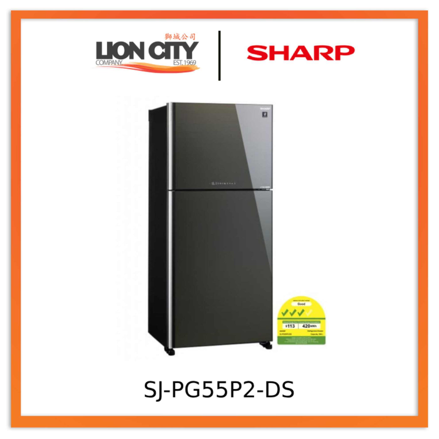 - Sharp SJ-PG55P2-BK/DS 554L Grand Top Refrigerator