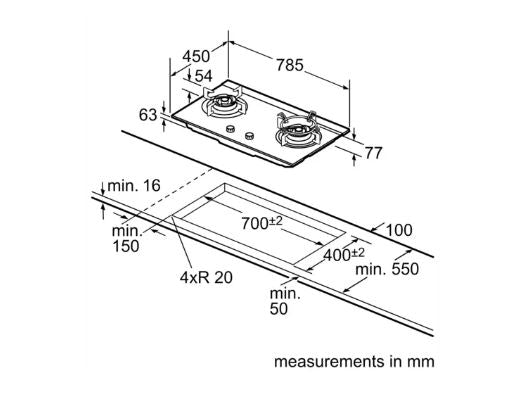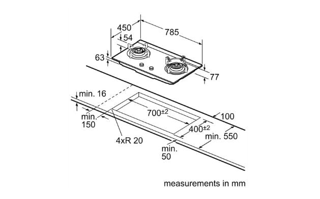 - Bosch DWP96BC50B Series 2 Wall-mounted cooker hood 90 cm + PBD7232SG Gas hob 78 cm Tempered glass, Black