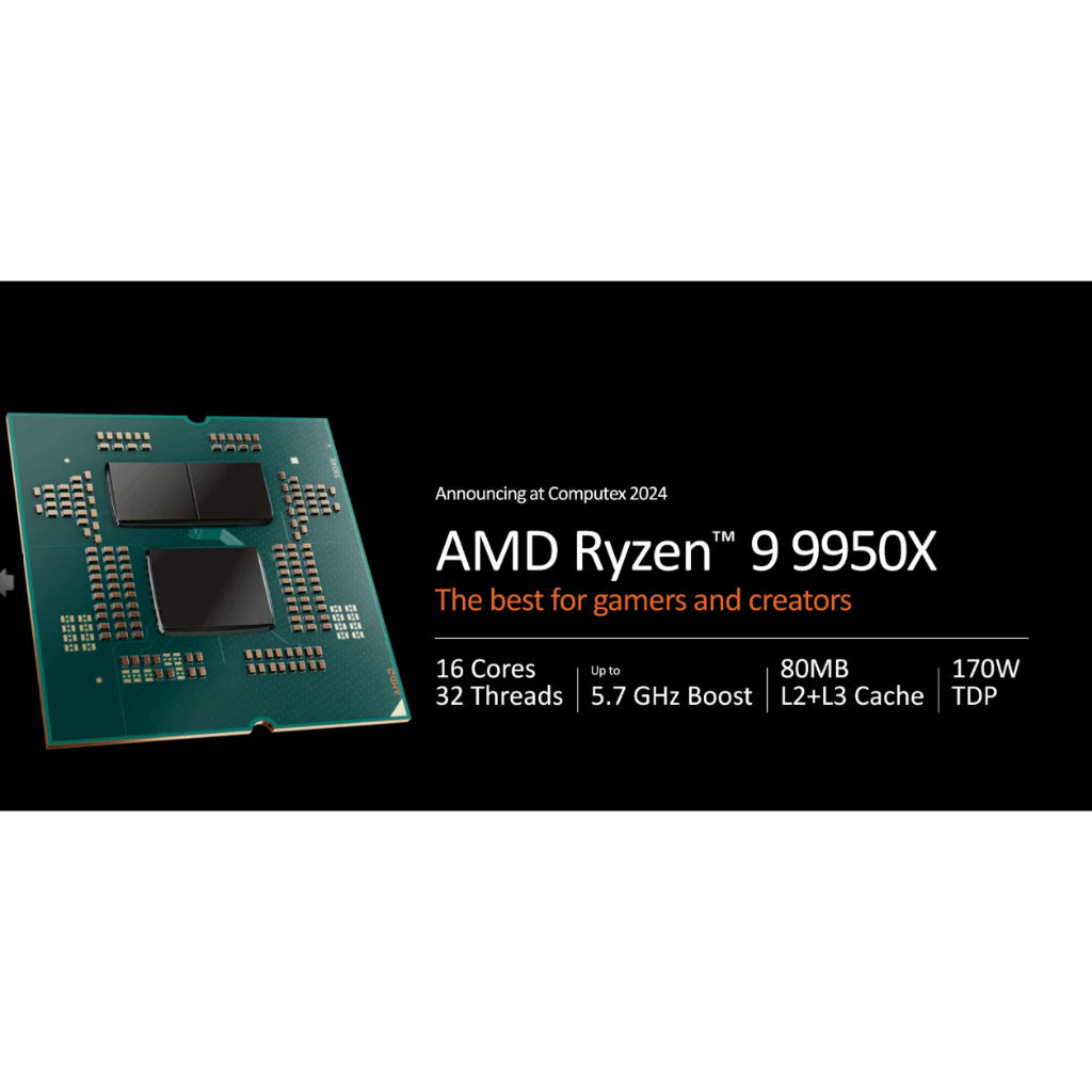 {"id":9158209175810,"title":"AMD Ryzen 9 9950X High-Performance 16-Core 32-Thread Desktop Processor for AM5 Systems","handle":"amd-ryzen-9-9950x-high-performance-16-core-32-thread-desktop-processor-for-am5-systems","description":"The AMD Ryzen 9 9950X processor delivers unparalleled computing power for enthusiast desktops. Its groundbreaking Zen 5 architecture represents a significant leap in performance, offering superior efficiency and raw processing capability. This CPU features 16 high-performance cores, meticulously engineered to handle the most demanding workloads. It also boasts 32 efficient threads, ensuring exceptional multitasking capabilities and smooth operation across numerous applications. Users will experience lightning-fast responsiveness and seamless execution of complex tasks, from intense gaming to professional content creation. The processor achieves an impressive maximum boost clock of up to 5.7 GHz, providing instantaneous speed when it matters most. A robust base clock of 4.3 GHz ensures consistent and reliable performance, even under sustained heavy loads. Engineered specifically for the enthusiast desktop market segment, this processor is the ideal choice for serious gamers seeking competitive advantages. Professional content creators, including video editors, 3D artists, and software developers, will also benefit greatly from its immense computational power. The processor is built on advanced TSMC 4nm FinFET technology for its CPU cores, representing the forefront of semiconductor manufacturing. Its I\/O die concurrently utilises efficient TSMC 6nm FinFET technology, ensuring optimal data flow and connectivity. This sophisticated manufacturing process not only enhances overall efficiency but also contributes to superior power management, keeping the system stable under pressure. The AMD Ryzen 9 9950X is fully unlocked for overclocking, empowering enthusiasts to push its limits for even greater, customised performance. Integrated AMD EXPO™ Memory Overclocking Technology is designed to optimise DDR5 memory performance, unlocking higher frequencies and tighter timings. Precision Boost Overdrive (PBO) dynamically enhances clock speeds based on system conditions, intelligently maximising performance. Curve Optimizer Voltage Offsets provide granular control, allowing users to fine-tune voltage and frequency for optimal stability and efficiency. Comprehensive AMD Ryzen™ Master Support offers an intuitive software suite for monitoring and managing processor settings. The processor supports the advanced AM5 CPU socket, ensuring forward compatibility with next-generation platforms. It is compatible with a wide range of supporting chipsets, including A620, X670E, X670, B650E, B650, X870E, and X870. This broad compatibility offers flexible system building options and upgrade paths. With 1280 KB of L1 Cache, 16 MB of L2 Cache, and a substantial 64 MB of L3 Cache, data access is exceptionally swift. This large, multi-tiered cache hierarchy minimises latency, resulting in faster application loading and execution. Its default Thermal Design Power (TDP) of 170W signifies robust power delivery, enabling sustained high performance without compromise. The 9950X is meticulously designed for users demanding the absolute pinnacle of desktop processing power. It excels in all complex computational tasks, from scientific simulations to advanced data analysis. This processor redefines desktop computing standards, offering a future-proof foundation for the most demanding high-end systems. Expect seamless operation, extreme responsiveness, and unparalleled reliability for years to come. The included 4-year warranty provides significant peace of mind, ensuring this investment in performance is well-protected. Experience the ultimate desktop processing with the Ryzen 9 9950X; its advanced features cater to elite computing needs.\u003cbr\u003e\u003cbr\u003e\u003ctable width=\"100%\"\u003e\n\u003ctbody\u003e\n \n \u003ctr\u003e\n \u003ctd\u003e\u003cstrong\u003eProcessor Name\u003c\/strong\u003e\u003c\/td\u003e\n \u003ctd\u003eAMD Ryzen™ 9 9950X\u003c\/td\u003e\n \u003c\/tr\u003e\n \n \u003ctr\u003e\n \u003ctd\u003e\u003cstrong\u003eProcessor Family\u003c\/strong\u003e\u003c\/td\u003e\n \u003ctd\u003eRyzen\u003c\/td\u003e\n \u003c\/tr\u003e\n \n \u003ctr\u003e\n \u003ctd\u003e\u003cstrong\u003eProcessor Series\u003c\/strong\u003e\u003c\/td\u003e\n \u003ctd\u003eRyzen 9000 Series\u003c\/td\u003e\n \u003c\/tr\u003e\n \n \u003ctr\u003e\n \u003ctd\u003e\u003cstrong\u003eForm Factor\u003c\/strong\u003e\u003c\/td\u003e\n \u003ctd\u003eDesktops, Boxed Processor\u003c\/td\u003e\n \u003c\/tr\u003e\n \n \u003ctr\u003e\n \u003ctd\u003e\u003cstrong\u003eMarket Segment\u003c\/strong\u003e\u003c\/td\u003e\n \u003ctd\u003eEnthusiast Desktop\u003c\/td\u003e\n \u003c\/tr\u003e\n \n \u003ctr\u003e\n \u003ctd\u003e\u003cstrong\u003eArchitecture\u003c\/strong\u003e\u003c\/td\u003e\n \u003ctd\u003eZen 5\u003c\/td\u003e\n \u003c\/tr\u003e\n \n \u003ctr\u003e\n \u003ctd\u003e\u003cstrong\u003eNumber of CPU Cores\u003c\/strong\u003e\u003c\/td\u003e\n \u003ctd\u003e16\u003c\/td\u003e\n \u003c\/tr\u003e\n \n \u003ctr\u003e\n \u003ctd\u003e\u003cstrong\u003eMultithreading (SMT)\u003c\/strong\u003e\u003c\/td\u003e\n \u003ctd\u003eYes\u003c\/td\u003e\n \u003c\/tr\u003e\n \n \u003ctr\u003e\n \u003ctd\u003e\u003cstrong\u003eNumber of Threads\u003c\/strong\u003e\u003c\/td\u003e\n \u003ctd\u003e32\u003c\/td\u003e\n \u003c\/tr\u003e\n \n \u003ctr\u003e\n \u003ctd\u003e\u003cstrong\u003eMax. Boost Clock\u003c\/strong\u003e\u003c\/td\u003e\n \u003ctd\u003eUp to 5.7 GHz\u003c\/td\u003e\n \u003c\/tr\u003e\n \n \u003ctr\u003e\n \u003ctd\u003e\u003cstrong\u003eBase Clock\u003c\/strong\u003e\u003c\/td\u003e\n \u003ctd\u003e4.3 GHz\u003c\/td\u003e\n \u003c\/tr\u003e\n \n \u003ctr\u003e\n \u003ctd\u003e\u003cstrong\u003eL1 Cache\u003c\/strong\u003e\u003c\/td\u003e\n \u003ctd\u003e1280 KB\u003c\/td\u003e\n \u003c\/tr\u003e\n \n \u